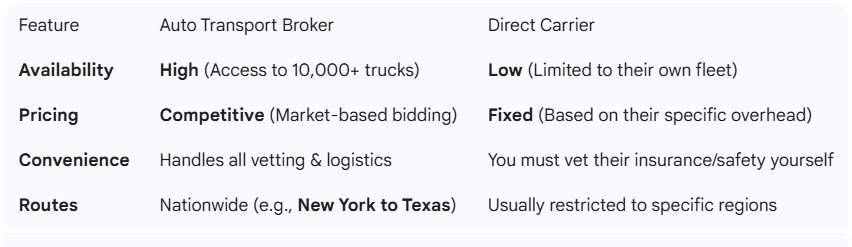 - Vetted Reliability: A broker ensures the carrier has active cargo insurance. If a direct carrier’s insurance has lapsed and your car is damaged, your “savings” vanish instantly.